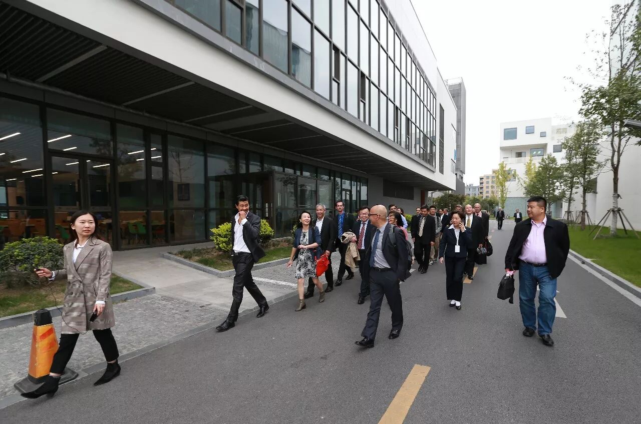 代表团一行来到汽车·创新港,首先参观了园区和其中的蔚来汽车总部,并听取EVCard电动车分时租赁公司的介绍。